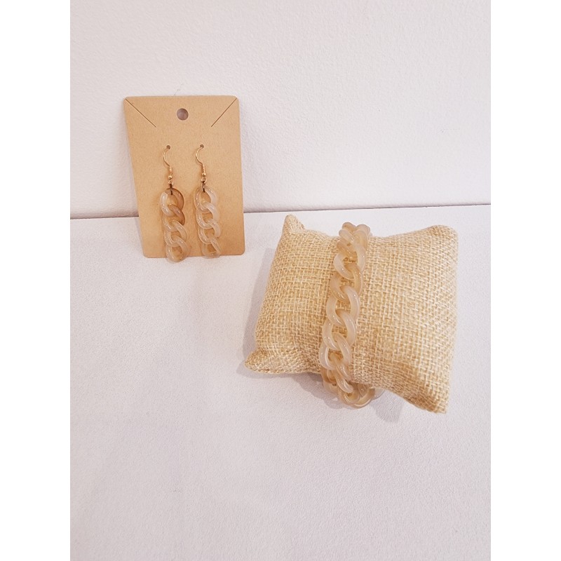 Bracelet ajustable et paire de boucles d'oreille Toga en petites mailles acrylique déclinés en plusieurs couleurs.