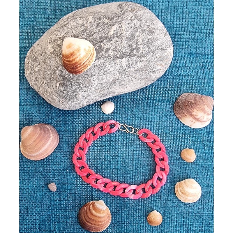 Bracelet "le petit Toga" en petites mailles acryliques décliné en plusieurs couleurs combinées et monté sur un fermoir en acier inoxydable.