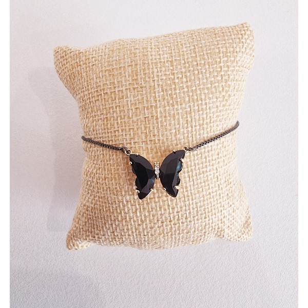 Bracelet fin coulissant en laiton couleur noir avec son papillon en verre.