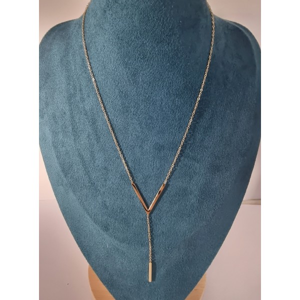 Ce collier Riviera est composé d'une chaine en acier inoxydable couleur doré et une chaine d'extension.